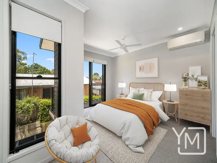 The second level accommodates three well-sized bedrooms, the master bedroom boasting its very own ensuite, walk-in robe, and even a private balcony. An additional bathroom on this level services the second and third bedrooms, both equipped with built-in robes and ceiling fans.