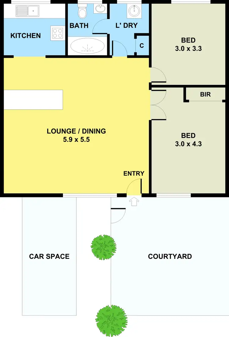 2 Bed • 1 Bath • 1 Car