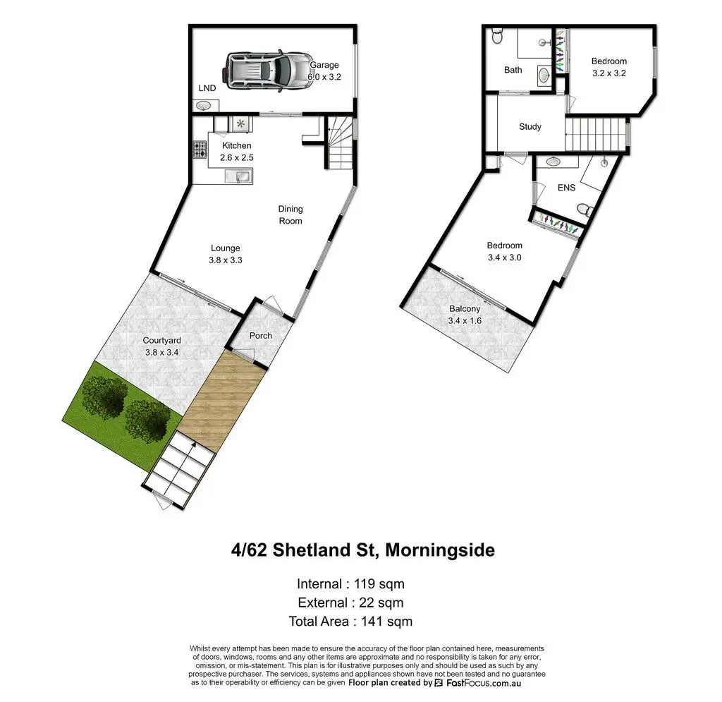 2 Bed • 2 Bath • 1 Car • 119m²