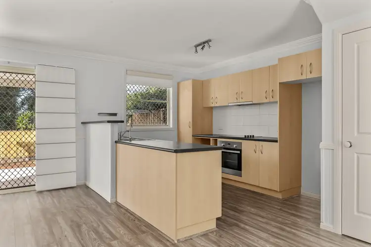 The lower level features an open-plan kitchen, living, and dining area, ideal for contemporary living. The modern kitchen is equipped with an electric cooktop, dishwasher, breakfast bar, and ample storage. Air-conditioning throughout ensures year-round comfort. Step outside to the oversized back courtyard, complete with a covered alfresco and decking, perfect for entertaining.