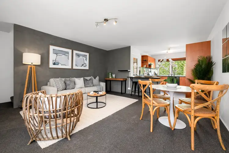 Sun-lit and smartly appointed, this North-facing townhome is designed for a fuss-free lifestyle with lock-and-leave convenience. The integrated living and dining space gaze over secluded communal lawns; the kitchen is sleek and boasts loads of storage, plus there's triple access inviting cross-flow breezes throughout the lower level. Two bedrooms above both boast walk-in robes including an enormous master, there's also a stylishly modernized bathroom, plus internal laundry, and a carport at the rear with a storage shed.