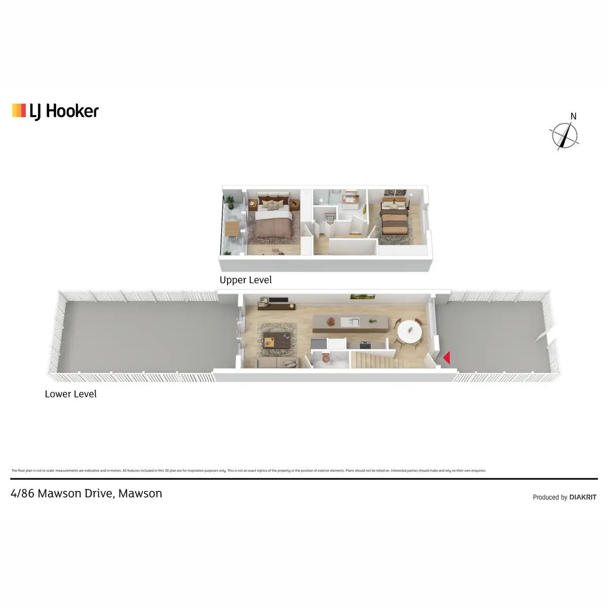 Access to the front door is through the private, secure front courtyard facing away from the road - a perfect place for the kids to play. Entering the home, you will be amazed by the two living/dining spaces that span across the lower level and host the kitchen perfectly in the centre. The well-appointed kitchen features gas cooking, an integrated microwave, stone island bench and ample storage space. Large windows on each side of the living allow light to saturate the room from all angles and provide lovely vistas to the gardens and trees outside. A powder room and reverse-cycle air conditioner further service the ground level for your convenience. The space continues on through to a second, rear courtyard � large in size and paved with easy care gardens, perfect for entertaining.
