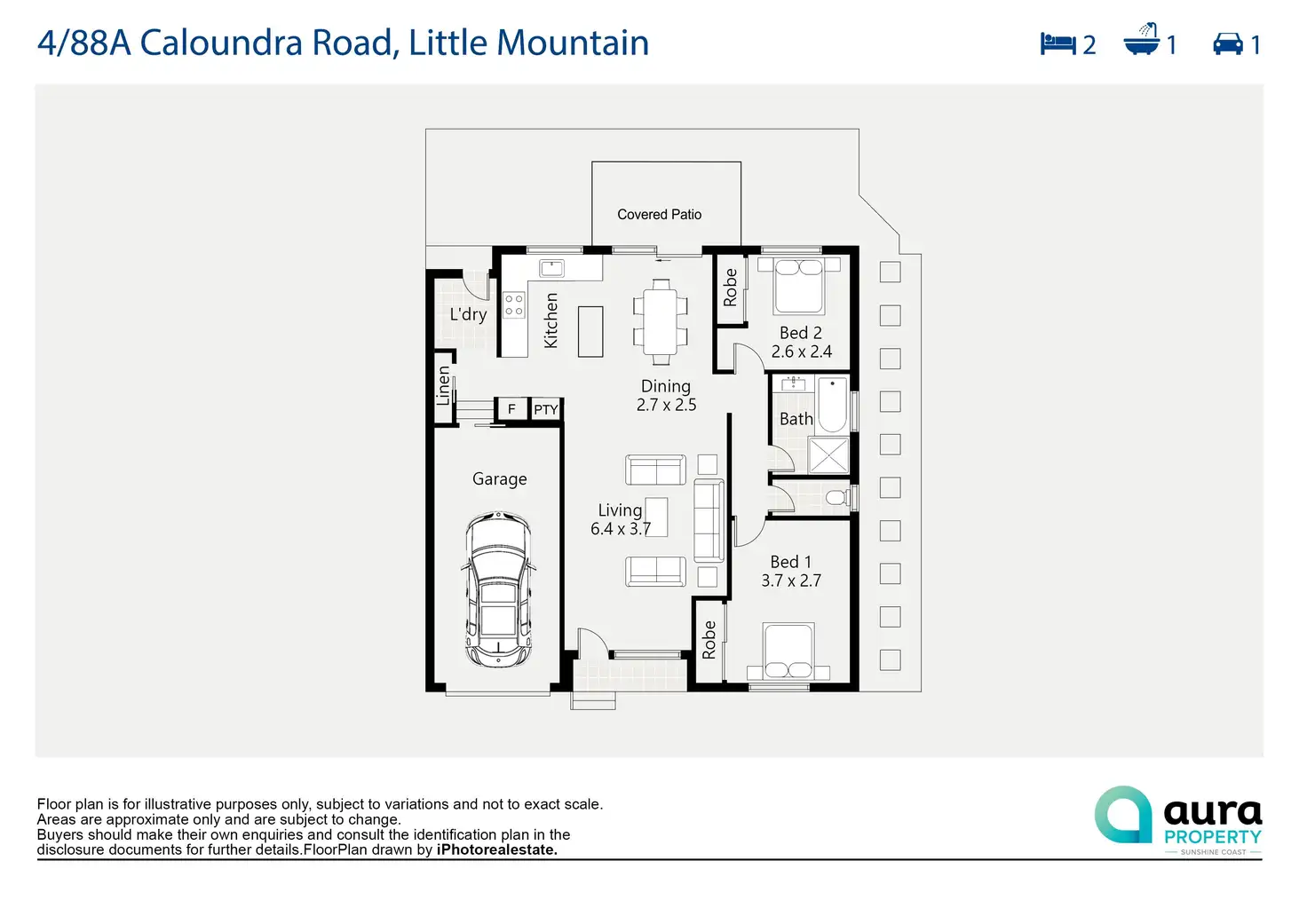 2 Bed • 1 Bath • 1 Car