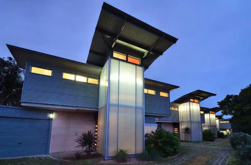 The Crescent Head holiday homes place a tiny resource footprint on our planet, making them world-class examples of green housing. They use recyclable building materials, such as rammed earth walls, and employ passive heating and cooling design to maintain a perfect living temperature.