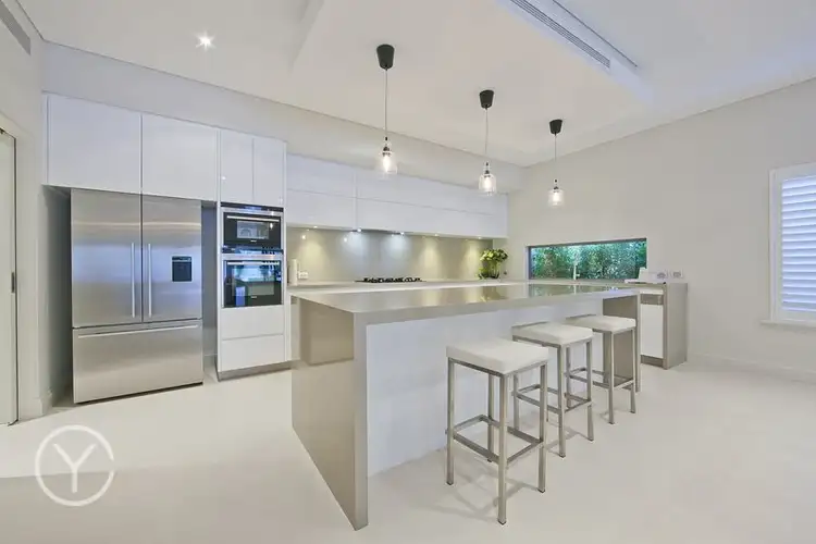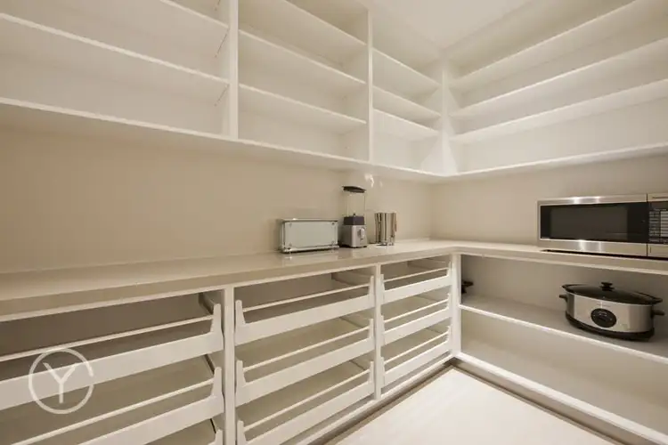 The dream entertainer's kitchen encompasses a huge walk in butler's pantry, bespoke cabinetry with an expanse of Essa stone bench tops and overhead feature lighting. Top of the range Siemens appliances complete the picture.