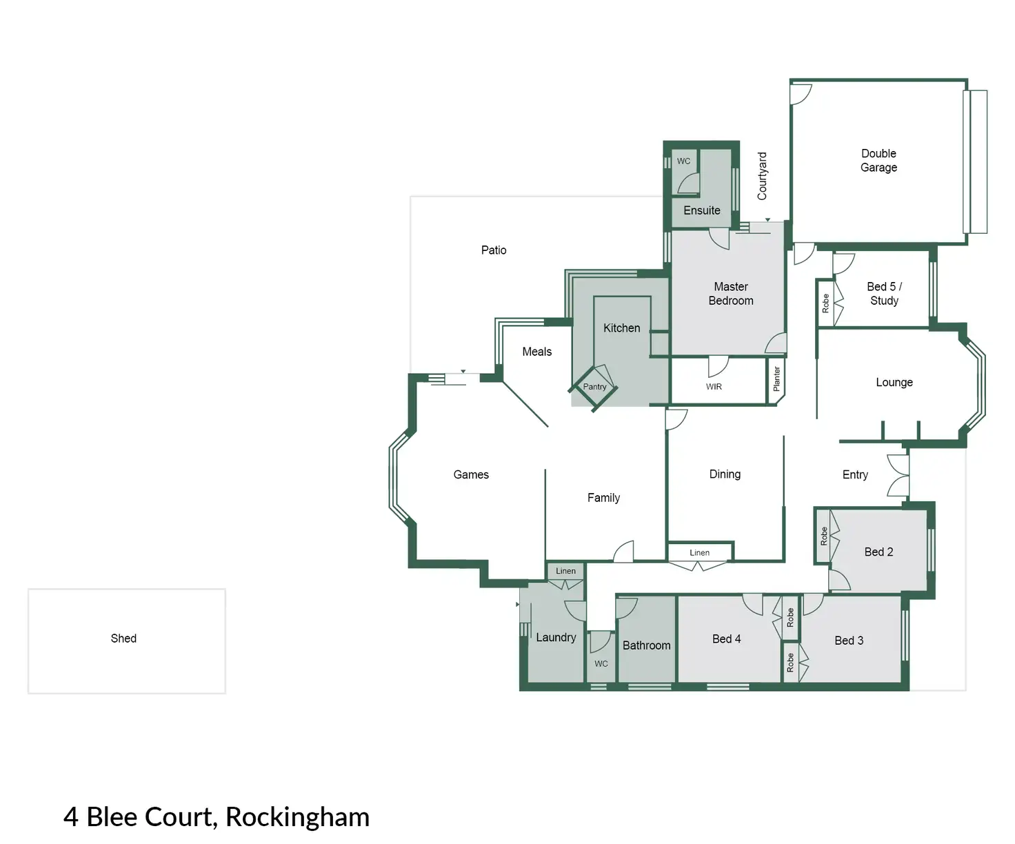 Perfectly nestled in the highly sought-after Meadows Estate, this lovingly refreshed, 5-bedroom, 2-bathroom home offers space comfort and style for the whole family. Beautifully maintained, it boasts a large, feature entry door, ducted air-conditioning, plantation shutters, solar panels, and bore reticulation, with landscaped gardens and, fresh internal paint. All bedrooms feature double robes, including a king-sized master suite with private courtyard access. Multiple living areas provide flexibility, from the formal lounge and dining to the sunken games room with striking raked ceilings and built-in bar. Outdoors, the large backyard is perfect for entertaining with a spacious patio, fire pit area, and room to add a pool if desired. A big shed offers ample storage, and the well-maintained gardens provide a low maintenance tranquil retreat.