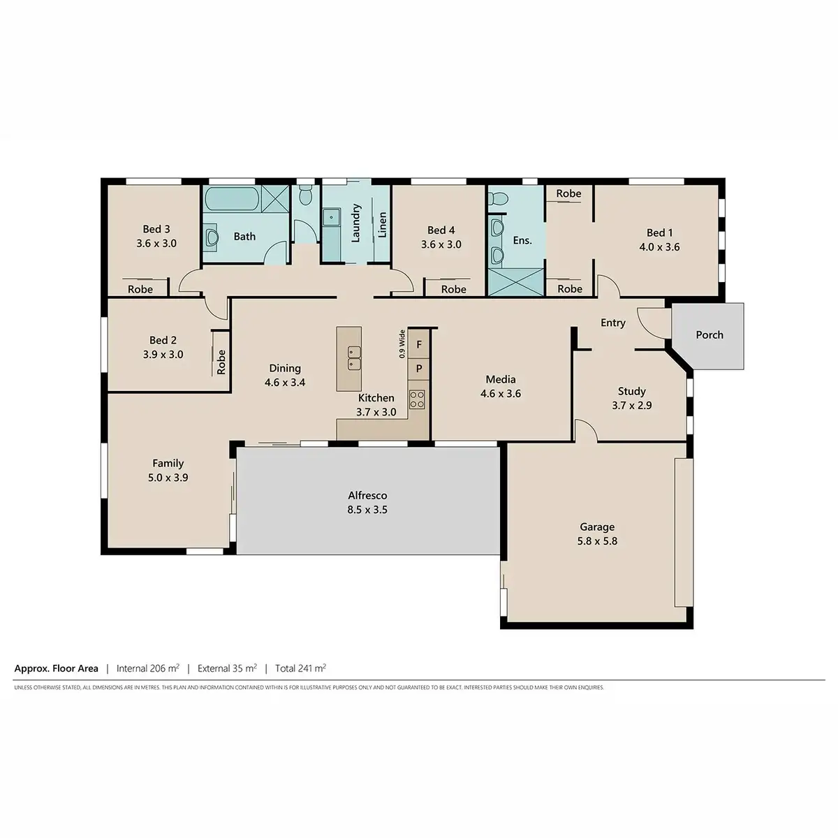 Formal and informal living is blended seamlessly with a separate media room, spacious living room and open plan family area, with and effortless flow through a three-section sliding door to the superb outdoor alfresco entertaining area.