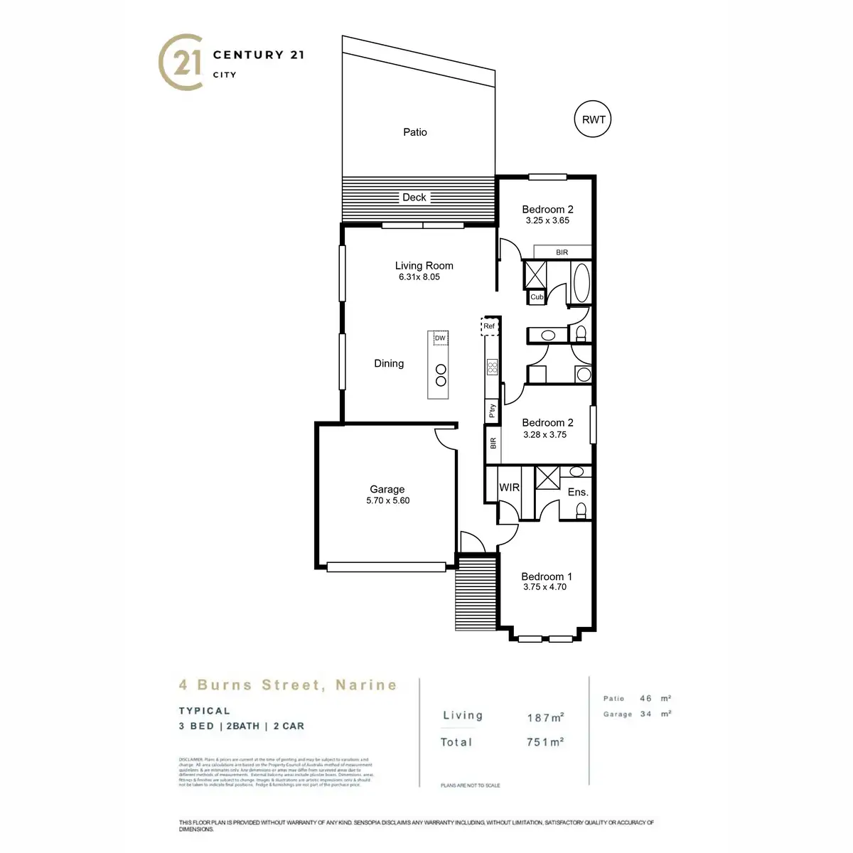 3 Bed • 2 Bath • 2 Car • 750m²