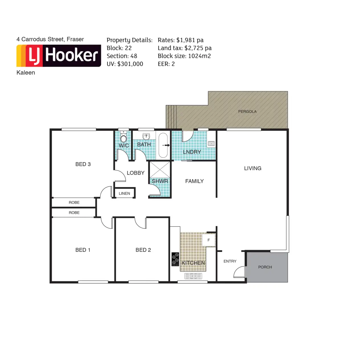 3 Bed • 1 Bath • 2 Car • 1024m²