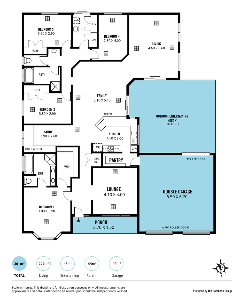 Continuing through the home we reach the enormous open-plan kitchen, dining and living area which is both spacious and versatile. The kitchen features statement colours & finishes, quality stainless steel appliances, a raised breakfast bar and an abundance of cupboard and bench space; much to the delight of the cooking enthusiast. There is also a sizeable walk-through pantry that also has access to the garage. The dining area is large enough to seat the extended family and also conveniently features a study nook to the left with a built-in desk. To the rear of the home is the second living area that features windows surrounding that really brightens and opens up the space, as well as providing access to the outdoor entertaining space.