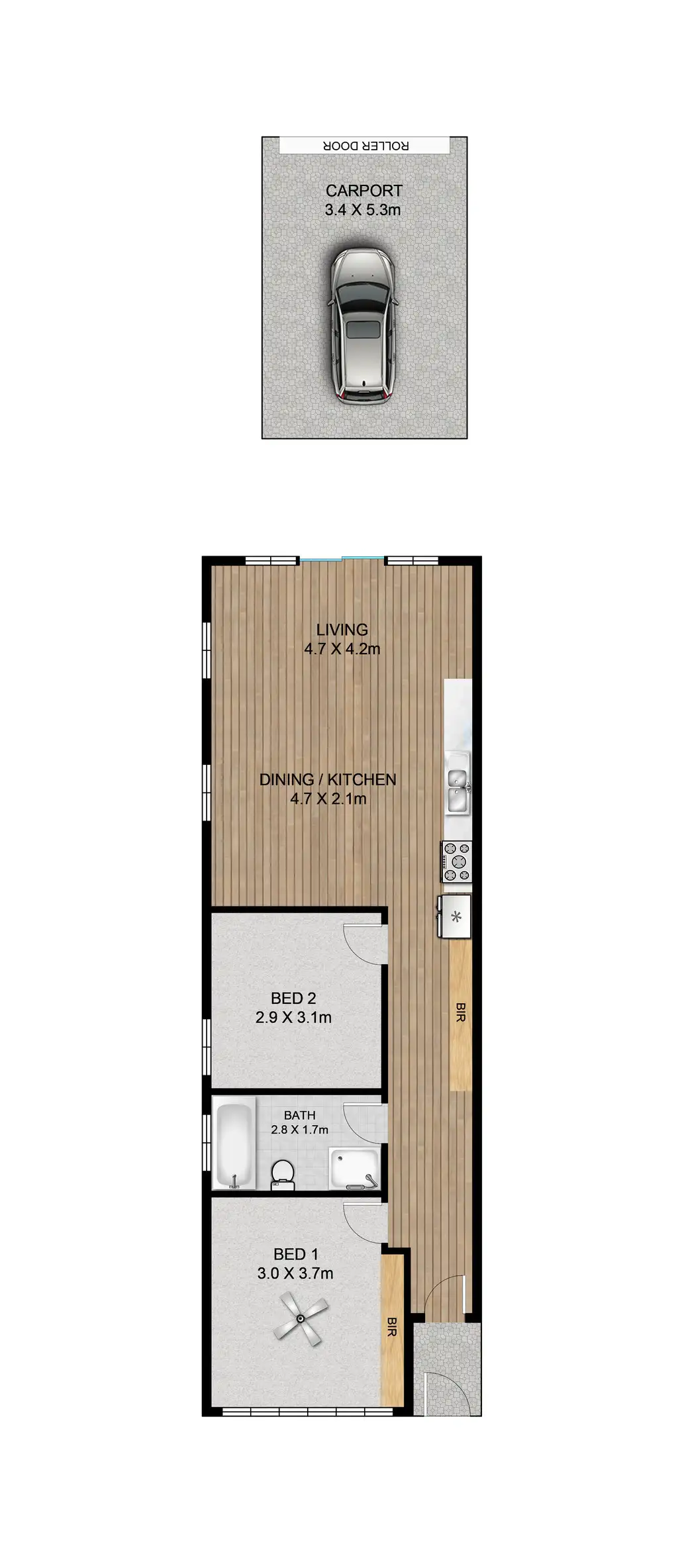 2 Bed • 1 Bath • 1 Car • 149m²