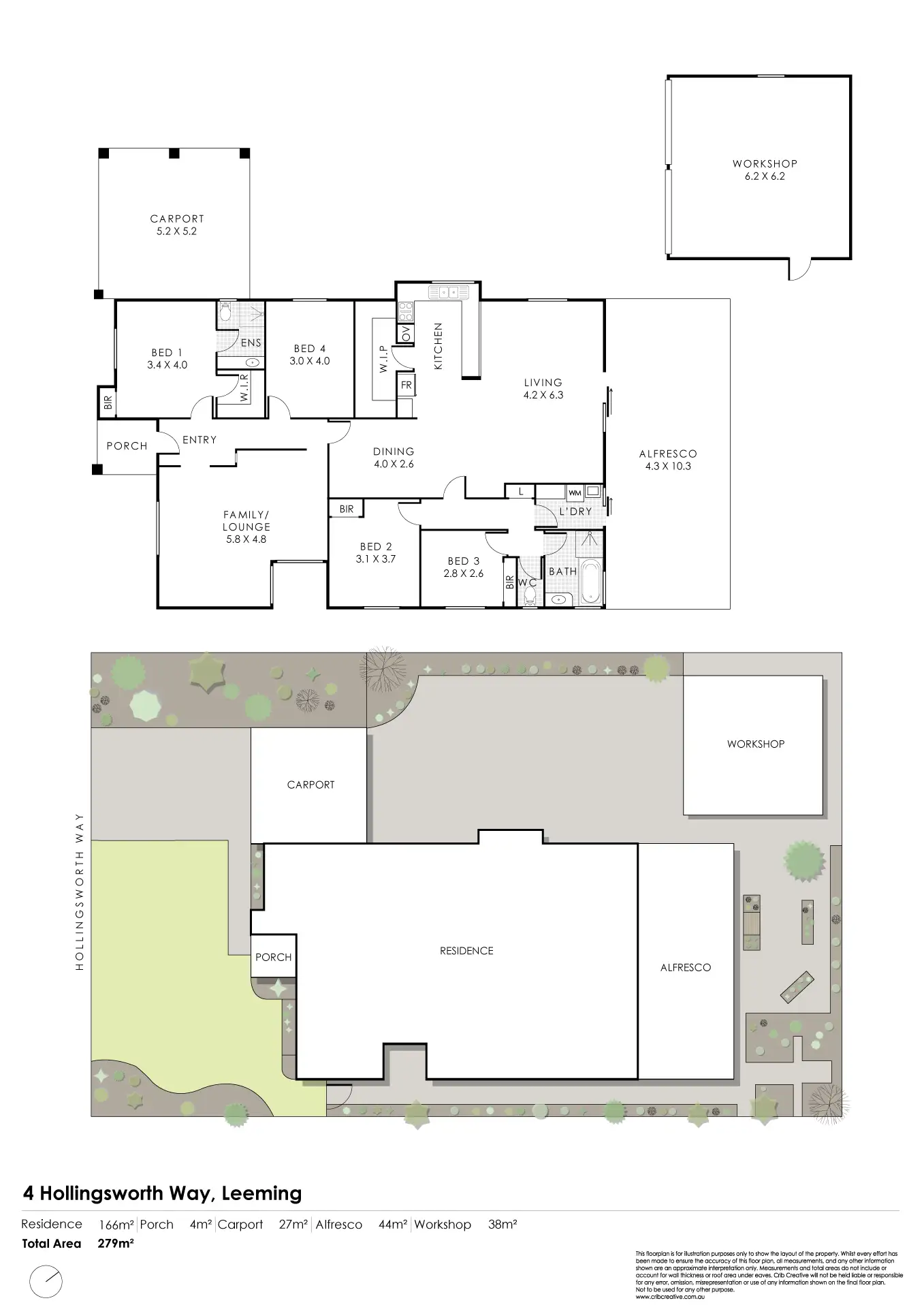Walking up the driveway it is hard to miss the elephant in the room, the massive workshop to the back left corner of the block, two single roller doors, power and alarm connected back to the house security alarm, for extra peace of mind.