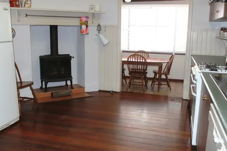 At the rear of the home is your kitchen and dining area. The kitchen is huge with ample bench and cupboard space, a dishwasher, stove and slow combustion wood heater for those cooler mornings. The country style kitchen surrounded by dado boards oozes character. A separate dining area is located off the kitchen.