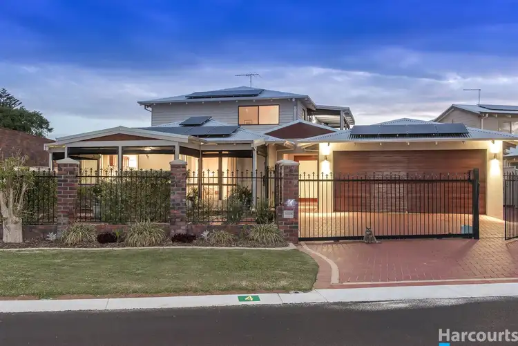 The front of the home and the upstairs areas cater for a family with 4 bedrooms and 2 bathrooms, stunning solid jarrah kitchen, and 2 living areas. The kitchen and family area open to the north of the home with the front alfresco area and street scape. A lovely place to sit and watch the children play in the quiet street. At the eastern side of the home is a large grassed area (watered by the bore) which would be perfect for the kiddies swings and outdoor toys plus plenty of room for the family pets.