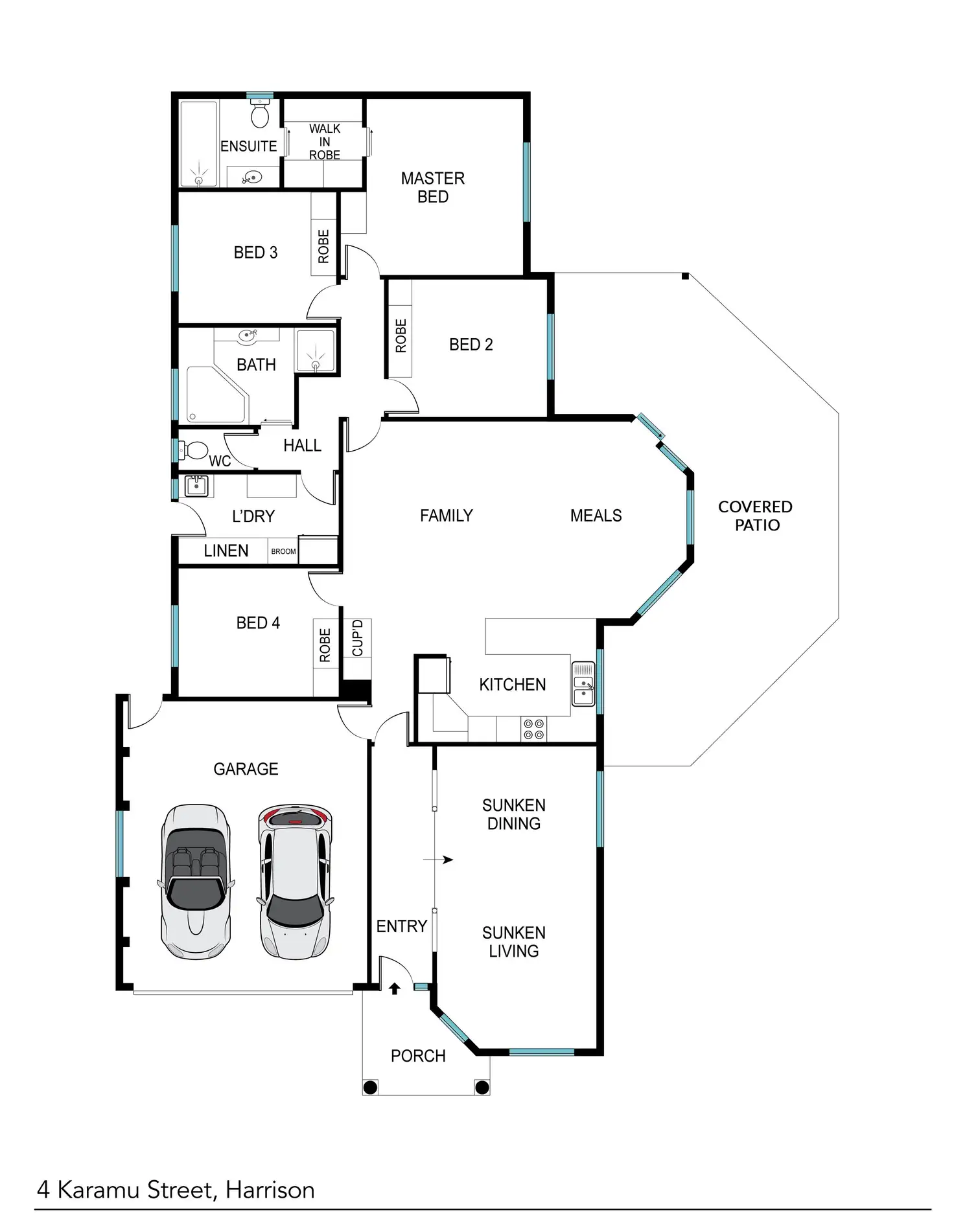 Beautiful and spacious both inside and out, this property consists of four bedrooms, the master with walk-in robe and updated ensuite, a fully tiled main bathroom with separate toilet, spacious open design kitchen, family, and dining room, plus a separate formal lounge and dining space with attractive floorboards. Completing the home is a laundry room with storage, a double lock-up garage, and an expansive covered patio.