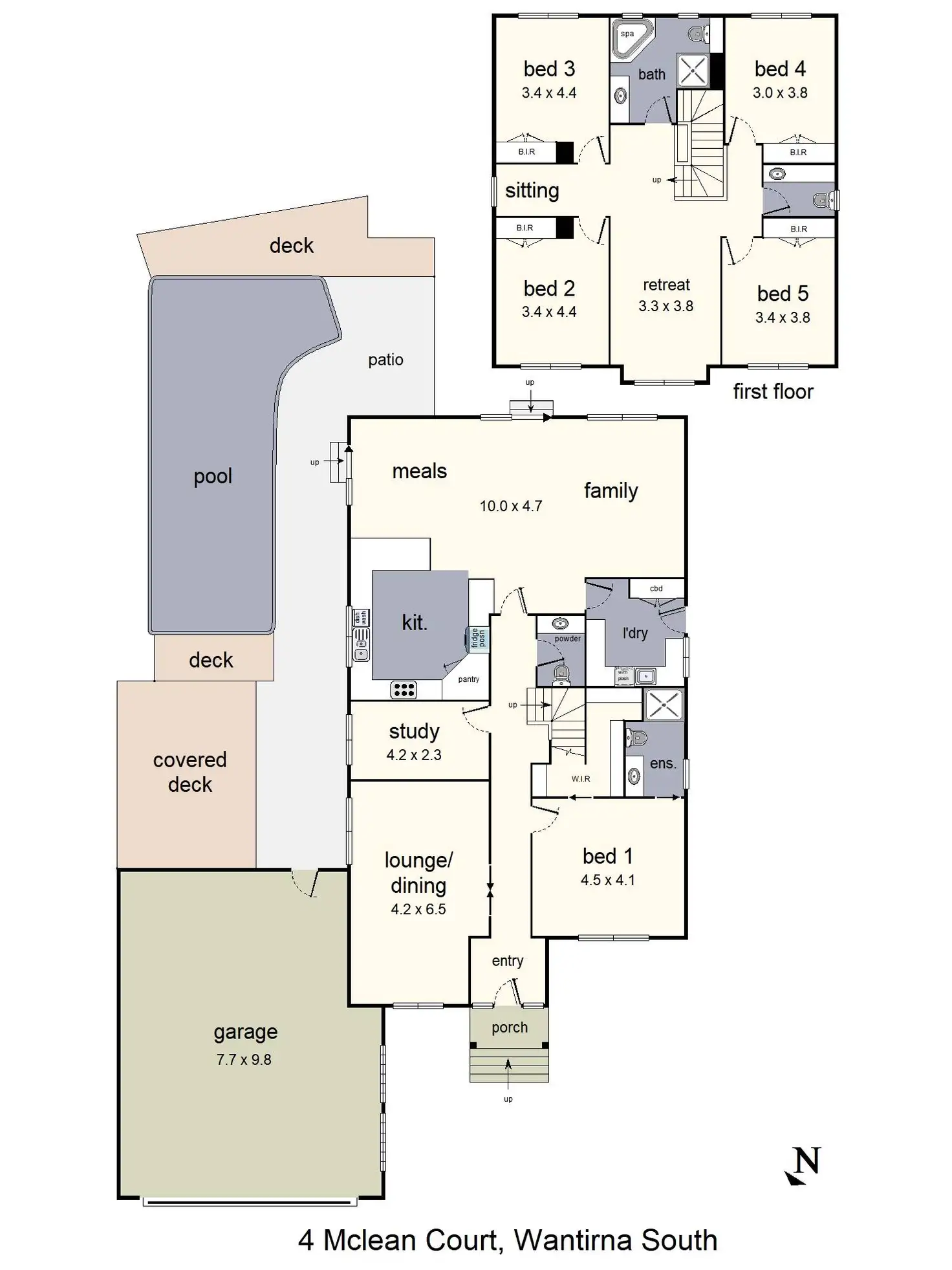 Set up for evening movies, the upper level retreat enjoys the presence of surround sound speakers, accompanied by the four queen-size children's bedrooms, all with built-in-robes and supplemented by a study nook, spa bathroom with toilet plus a powder room. With the master bedroom proudly resting on the entry level and equipped with a walk-in-robe and ensuite. The entry level also accompanied by a study, powder room and huge laundry with drying cupboard.
