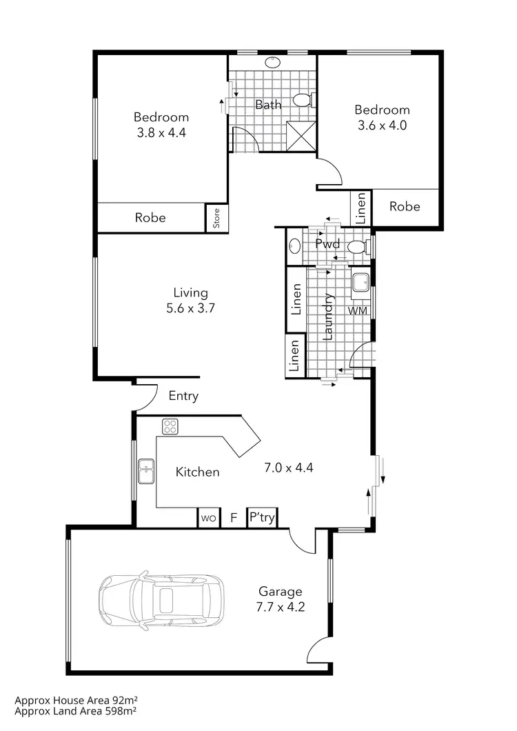 2 Bed • 1 Bath • 1 Car • 598m²