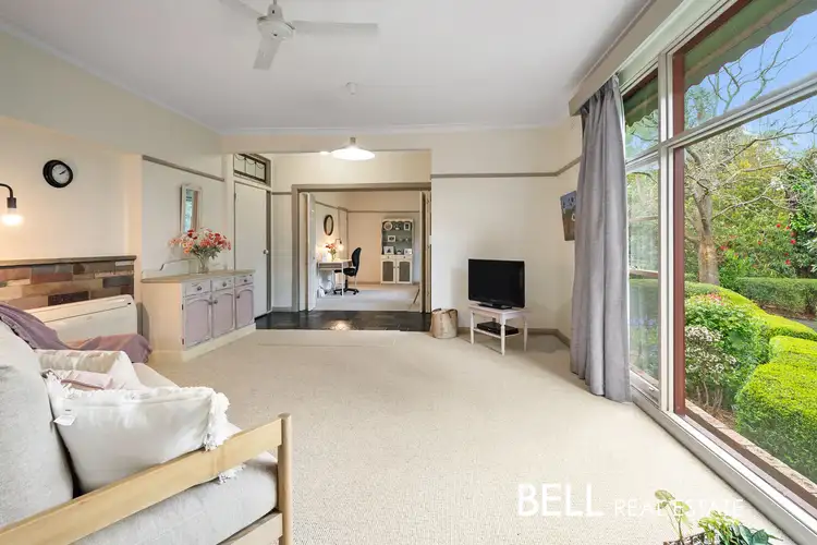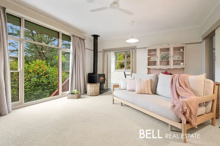 Basking in the glow of northerly light, this beloved residence on a flat, half-acre corner block sits nestled in one of Ferny Creek’s most exclusive pockets. Here, the only sounds breaking the serene quiet are the melodies of local birdsong or the distant hum of the postie making his rounds. Held and cherished by the same owner for over 50 years, this mid-century gem was once one of the original holiday shacks in the area, back when city dwellers would escape to the hills for a breath of fresh air. Retaining its original double-hung sash windows and picture rails, it whispers stories of yesteryear while offering all the comforts of modern living with scope for so much more.