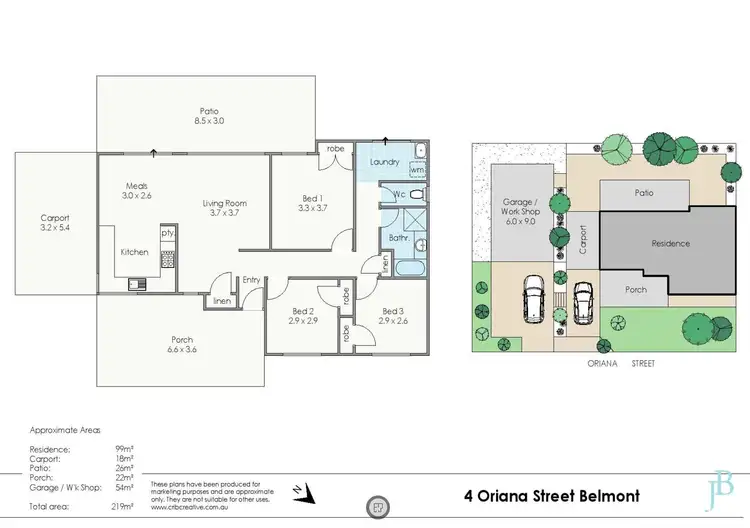 • Freestanding double lock-up (6x9) garage/workshop with additional pedestrian door access, light and power - 54sqm.