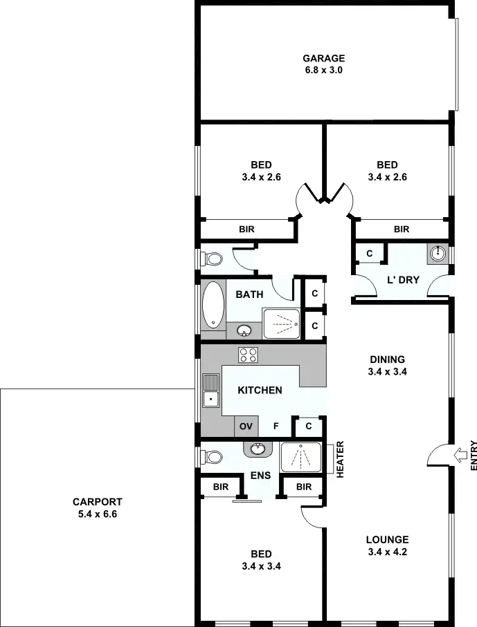 3 Bed • 2 Bath • 3 Car • 763m²