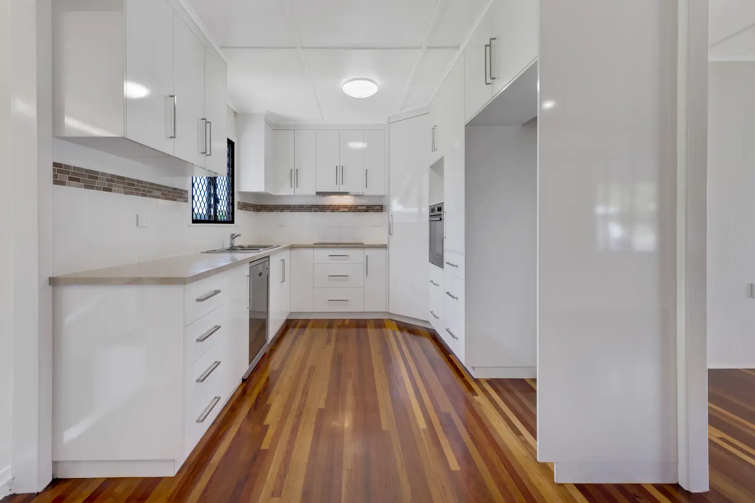 Walking up to the cute front deck, you get the feeling this appealing property has a lot to offer; and you'd be right! Polished timber floors flow throughout this inviting home, creating an earthy, welcoming ambience that instantly calms your senses. The spacious open plan lounge & dining zone lead onto the large, modern kitchen. Looking bright & timeless, this classic & well-designed space features a large fridge cavity, an oversized step-in pantry, dishwasher, easy clean cooktop, wall oven, up high microwave nook, fabulous prep & storage space & a window view of the big backyard.