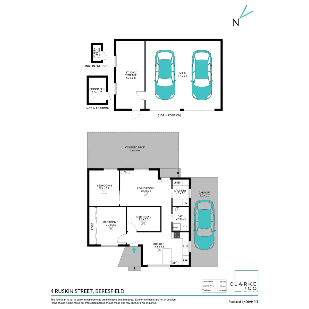 - A single carport with drive through access to a separate double bay shed with a workshop space and a kitchenette