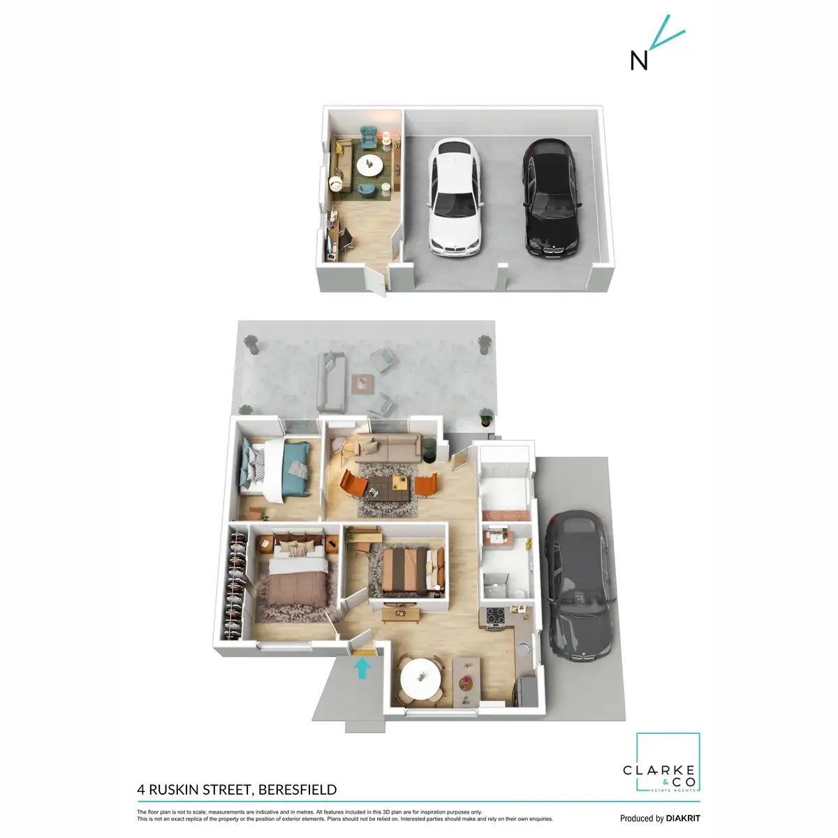 - Polished floors, roller blinds and matte black ceiling fans throughout