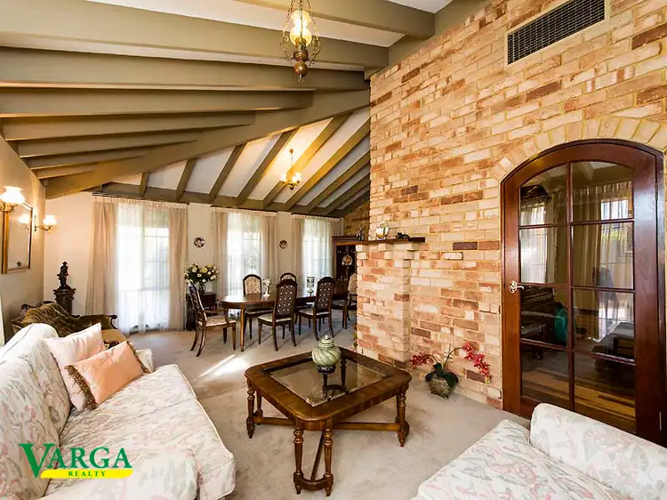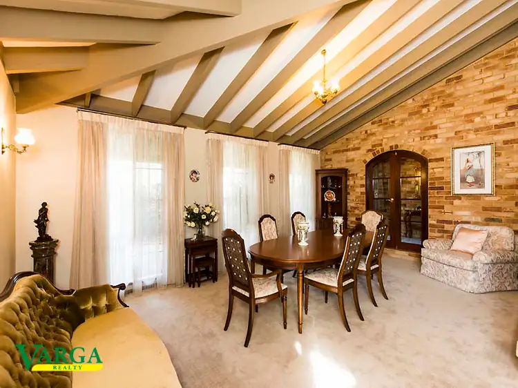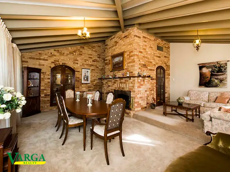 • Separate formal dining area and sunken lounge includes high ceiling with exposed rafters , brick wood fireplace and quality carpet. French doors from the kitchen and entrance hall leads to the lounge and dining area which would be great to convert into a theatre.