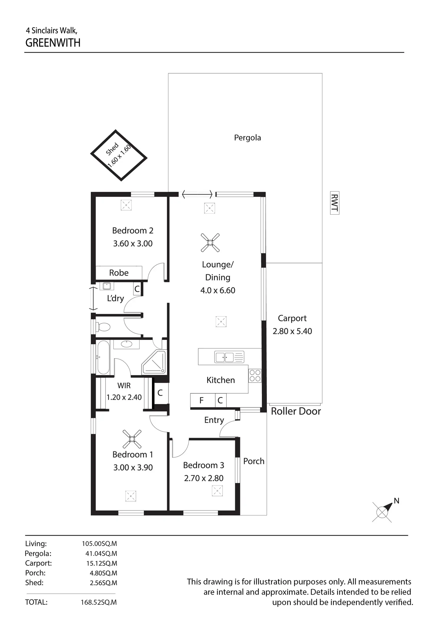 • Sheltered alfresco dining area, and a garden shed in the back yard