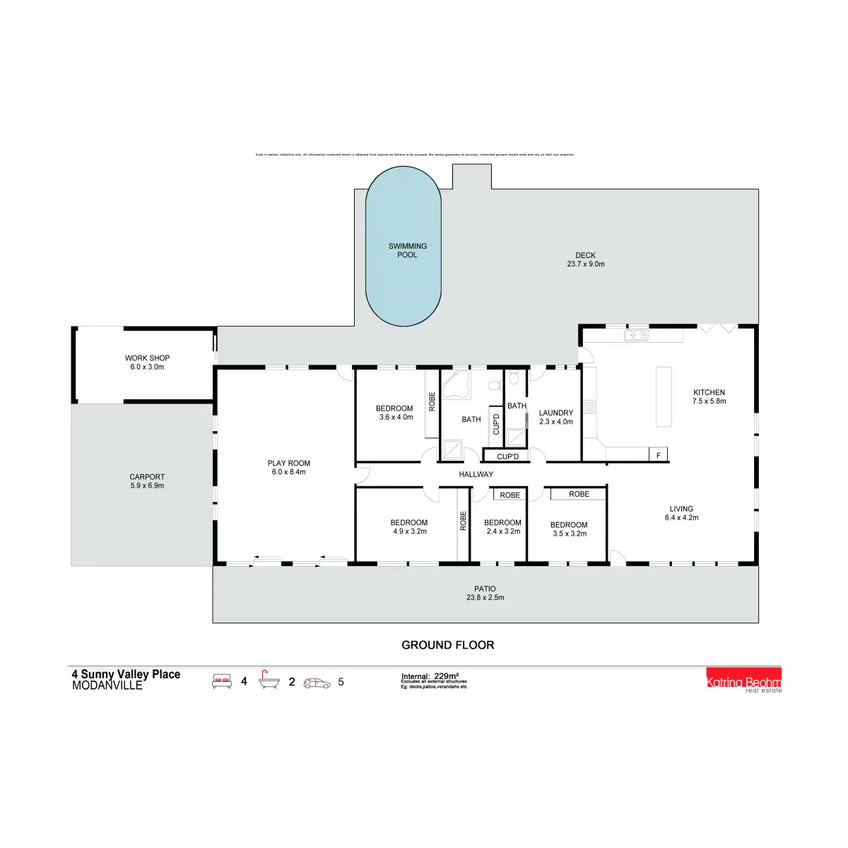 4 Bed • 2 Bath • 5 Car • 5000m²