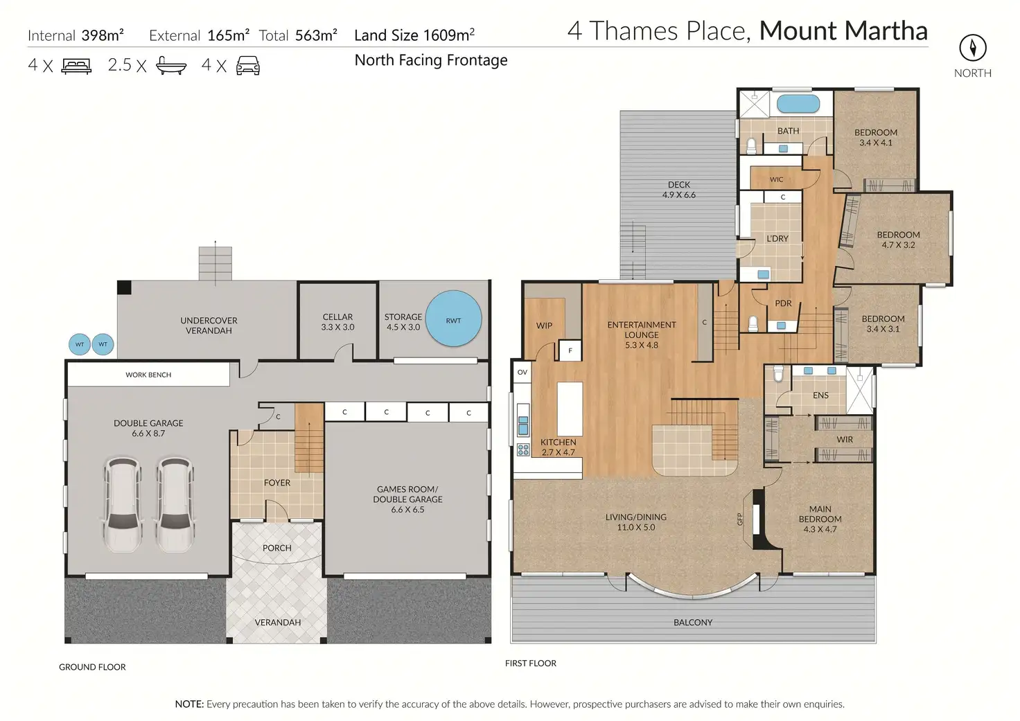 - Two double garages (one with polished concrete floors), perfect for use as a gym or games room