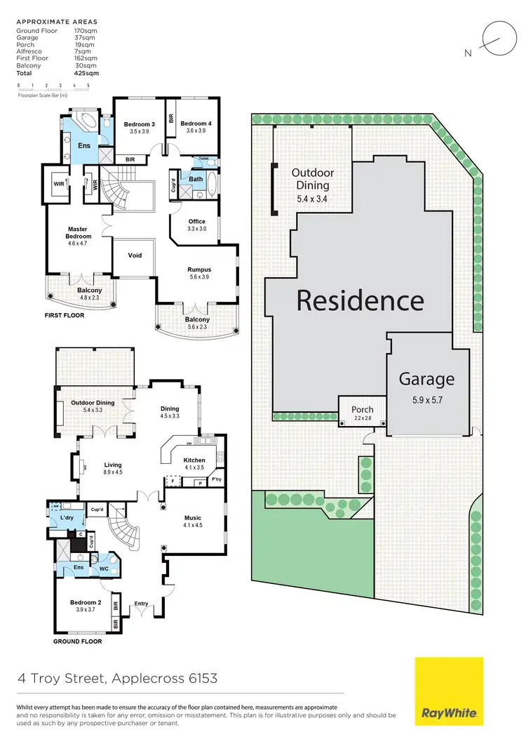 Upstairs, gleaming timber floorboards warm the fifth bedroom - or study, a versatile games/activity room with heaps of space for a pool table (and lovely vista across the river and towards Dalkeith) and a huge master retreat with double doors for privacy, a laundry chute, separate "his and hers" walk-in robes, a fully-tiled ensuite with a bubbling corner spa bath and double doors that open out to its very own front balcony with a pleasant leafy aspect, as well as café blinds. The two other bedrooms are both carpeted and have built-in robes. They are serviced by a fully-tiled main family bathroom with a shower, separate bathtub, marble vanity and heat lamps.