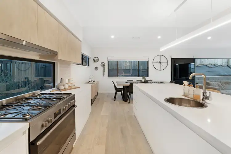 Nestled in the enviable Stone Creek Estate, discover a front row position to this gracefully sophisticated residence in a vibrant, family friendly neighbourhood. Upon your entrance into the home, be greeted by a cosy media style room, masterfully tucked away. Venture down the hall and marvel at the beating heart of the home - a highly esteemed open plan kitchen and living space, seamlessly blending with the impressive exterior. Cherish a true chef's dream kitchen, enriched by Scandinavian style timber cabinetry, entrancing stone waterfall bench tops adorned by a panel pendant light, window splashback and magnificent butlers pantry. Appreciate breath taking sliding doors expanding across two lengths of the room, craftily fusing the opulence of the indoors with the out - host your guests in unparalleled style and spend all day long by the sun-kissed pool, with a soothing spa.