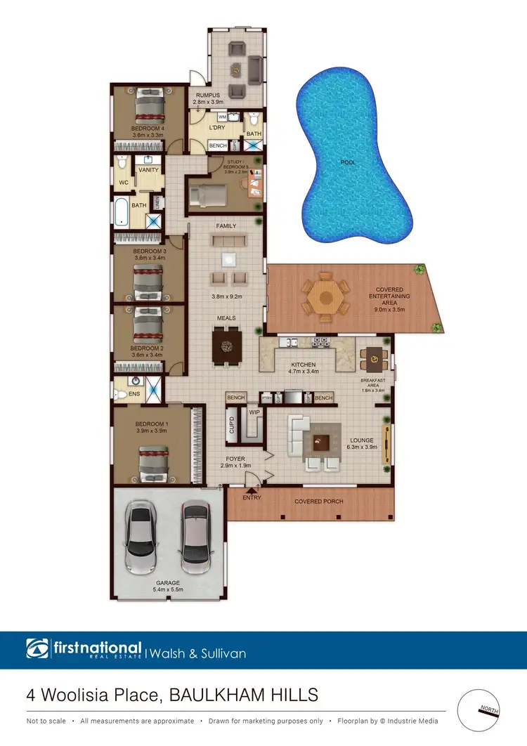5 Bed • 3 Bath • 2 Car • 750m²