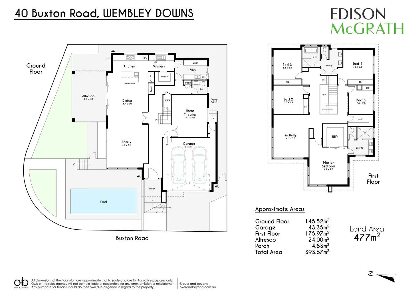 Upstairs you will find the master bedroom with walk-in robe and full ensuite, four additional bedrooms all with built-in robes and a well designed main bathroom. All growing families desire a third living option for the kids, which is also situated on the upper level.