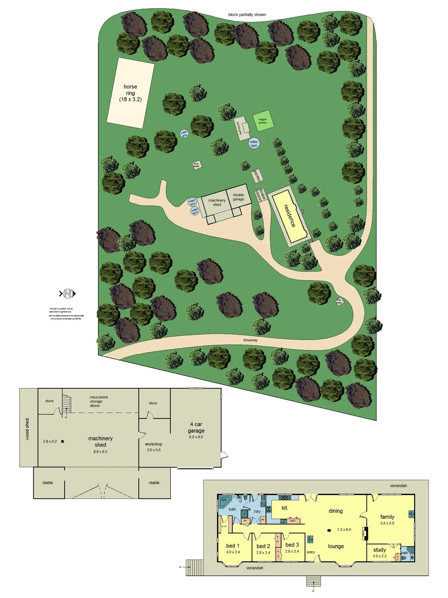 The property benefits from gas heating and evaporative cooling, solar power and hot water, bottled gas heating, 104,000L water tanks, 2ML bore, a cattle ramp, chook pen, wood shed, undercover carport for two cars, further double garage, plus huge adjacent shed/workshop with concrete floor, 2 phase power, two horse boxes, a lined tack room and mezzanine storage.