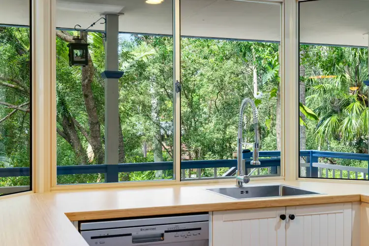 Positioned at the end of a quiet, tree-lined cul-de-sac, the driveway passes over a running creek and through a rainforest-style landscape before reaching the elevated house site. With town water convenience and extra rainwater tanks, this semi-acreage will appeal to families and garden lovers, with its raised veggie beds, a chook house and plenty of space for the kids to explore.