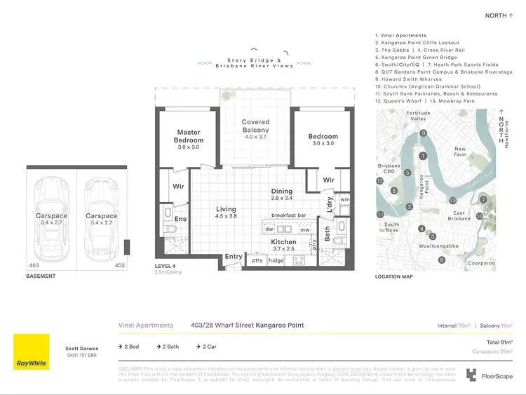 Discover an exceptional lifestyle at 403/28 Wharf Street, Kangaroo Point. Perched at the penthouse level of a boutique complex, this 2 bedroom, 2 bathroom apartment offers a rare blend of sophistication, privacy, and convenience, all framed by north facing city, bridge, and river views. Unlike most city apartments, this residence has no overlooking neighbors behind it and comes with a rare two secure, side by side carparks, a true rarity in Kangaroo Point.