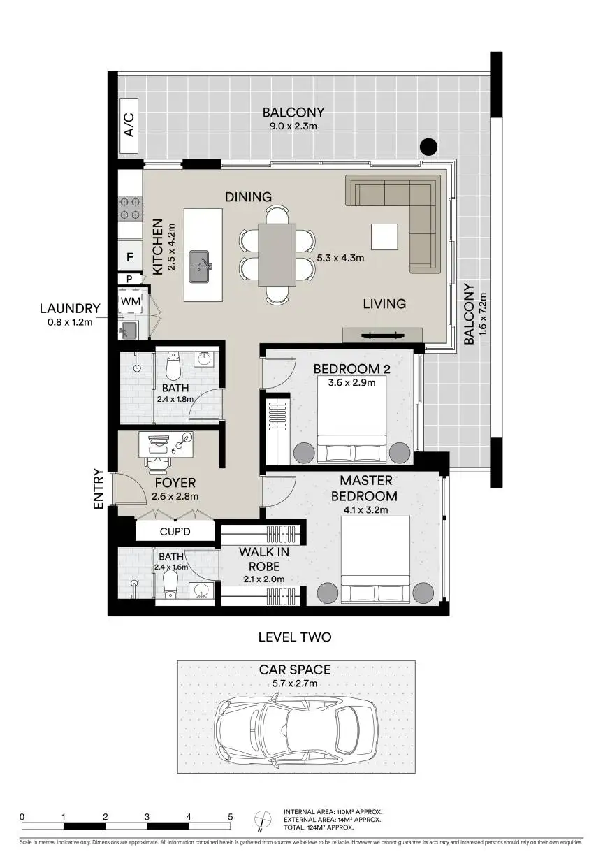 2 Bed • 2 Bath • 1 Car • 124m²