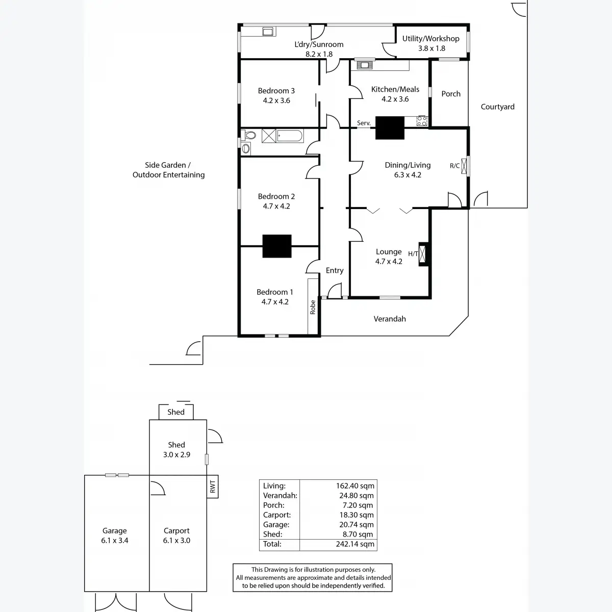 The delightful leafy side gardens are private & enjoying an Easterly & Northern aspect, with room to extend, or for a pool (stcc). Another option is to create your development vision, potentially subdividing this large landholding into 3 allotments facing Gertrude Street or retain the home & subdivide the front portion (all subject to the necessary consents & approvals).