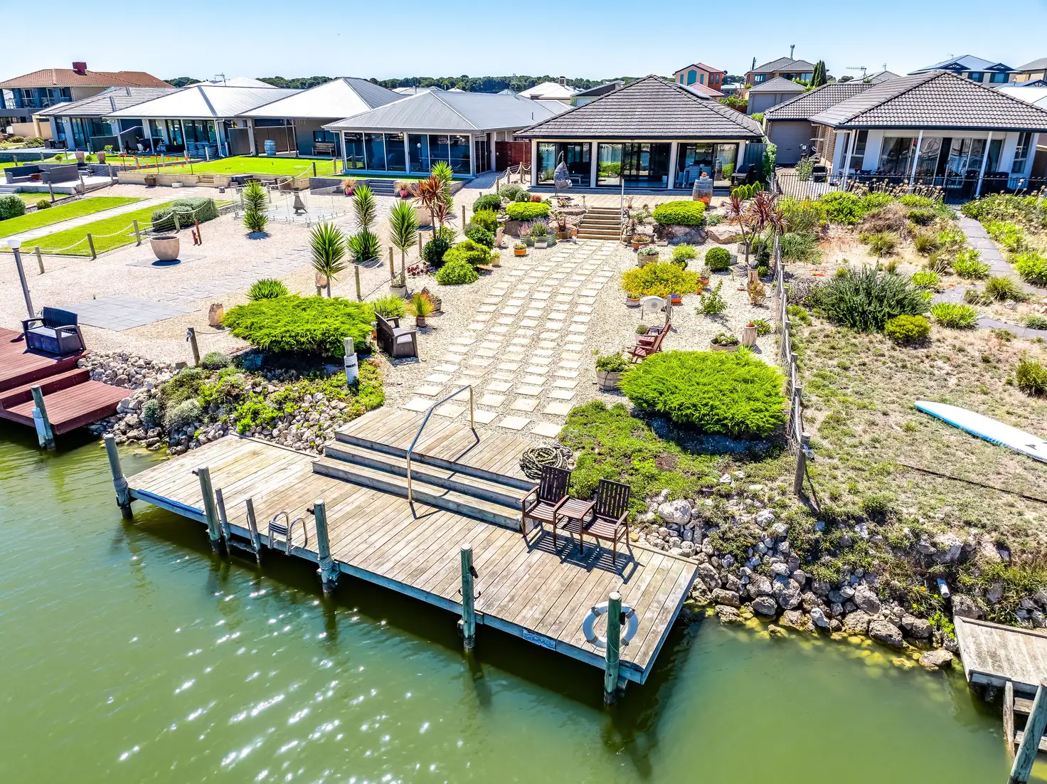 Beautifully landscaped gardens and lawns. Paved all the way to your own extended waterfront jetty with a step down and ladder area to where you want to have your new boat.