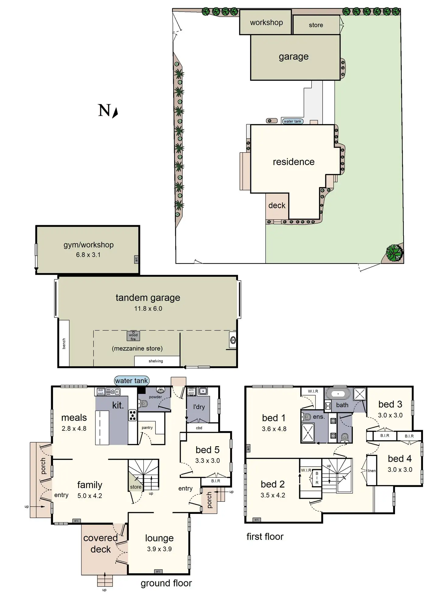 Further complemented by a laundry chute, ducted heating, split system air conditioning, under stair storage, water tank, large multi-purpose room with ceiling fans and split system heating/air conditioning, ample off-street driveway parking plus a huge, high clearance garage offering parking for up to three vehicles, workshop space, wood heater, sink, rear roller door and mezzanine storage.