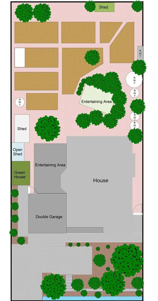 * Lots of raised garden beds, established trees and paving throughout rear garden