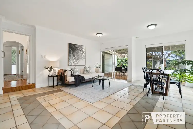 You'll fall in love with this enchanting home nestled in one of Perth's favourite leafy suburbs with an inviting facade and gorgeous street appeal. As you step inside, you're welcomed by an entry with warm wood parquetry and a front lounge adorned with double French-style doors. The spacious family room at the rear is light and bright, featuring a corner kitchen and reverse cycle air conditioner ensuring comfort year-round, while the built-in pantry adds convenience. This area seamlessly flows outside to an outdoor alfresco and grassed area, perfect for entertaining or enjoying a quiet moment and listening to birdlife.