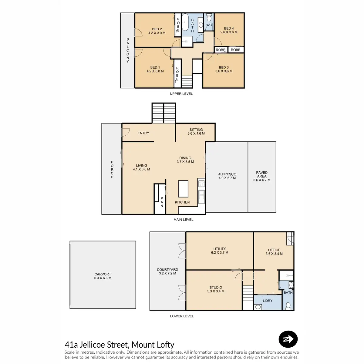 The 4 spacious bedrooms are all located on the upper level and all contain built in cupboards and ceiling fans, with the main bedroom and second bedroom both opening out onto the front balcony with wonderful views. The modern main bathroom is a stand out, with floor to ceiling tiling and a gorgeous bathtub to soak in at the end of a long day.