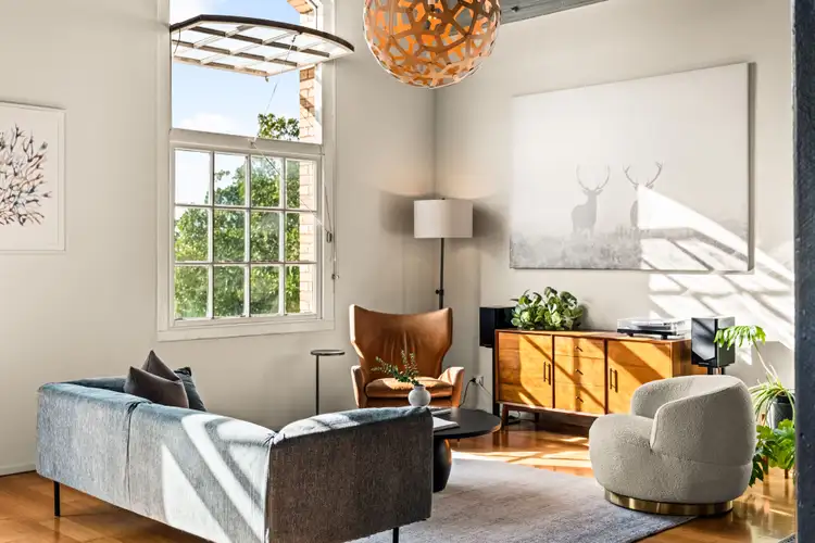 The open plan living and dining area is the star of this apartment, a sprawling place where you can bask in the Eastern sunshine year round, enjoying the picturesque panorama and glimpses of the neighbouring brick walls across the laneway.