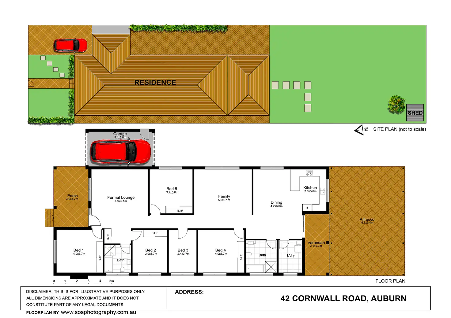 * 5 spacious sun-filled bedrooms with built-in robes to four,