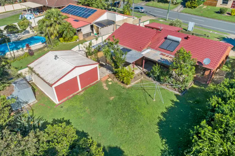 More than meets the eye, this excellent home is set on a generous 735m2 block. With an awesome 2 bay shed at the rear there is plenty to love! From your first step in the door, you'll love the character of this home. The living space is vast and perfect for year round entertainment with stunning high cathedral ceilings, air-conditioning and even a wood heater. The dining room adjoins the kitchen and flows nicely to your alfresco. Warm and inviting the kitchen has wooden benches and ample storage. Flowing to the left, 3 generous bedrooms skirt the family bathroom with separate toilet. All beds have built-in storage and external roller blinds to keep the home cool and secure. The backyard is generous and with side access to the left of the residence you can drive through to your two-bay shed!