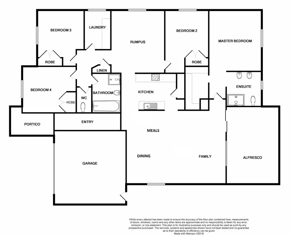 Offering four bedrooms, the generous master bedroom with walk in robe, full en suite including oversize shower, double vanity and toilet is situated to the rear of the home. The remaining three good sized bedrooms all with built in robes are serviced by the family bathroom.