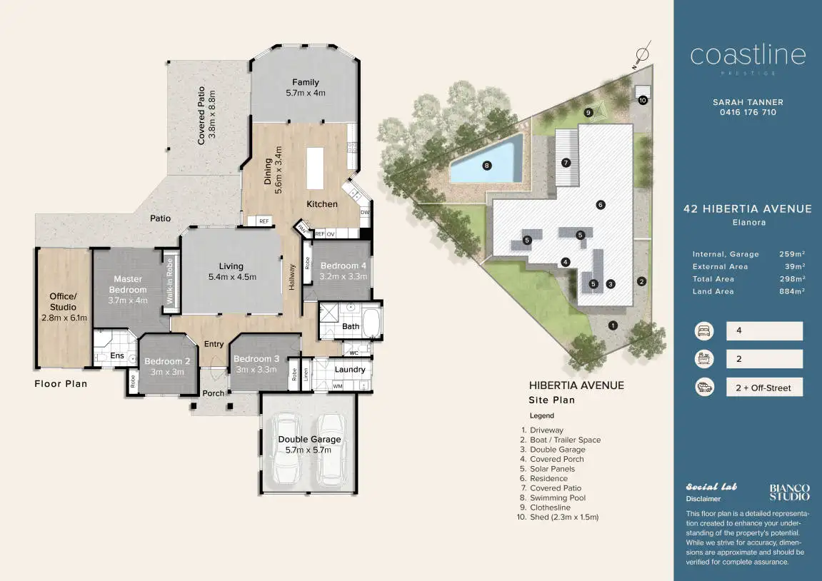 The master bedroom enjoys pool views, direct access outside, a generous robe and ensuite. All additional bedrooms are well sized with built-in wardrobes. A versatile studio/retreat, with separate access on each side adds further flexibility, and a peaceful outlook to the pool.
